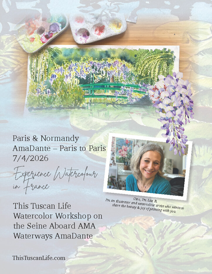 After years of creating art and teaching in the breathtaking landscapes of Tuscany, I'm now taking a leap across the border and partnering with Navigator Luxury Travel to bring my very first week-long Watercolour river cruise on the Seine aboard AMA Waterways Amalyra from Paris to Normandy —and I can’t wait to have you join me on this incredible journey!